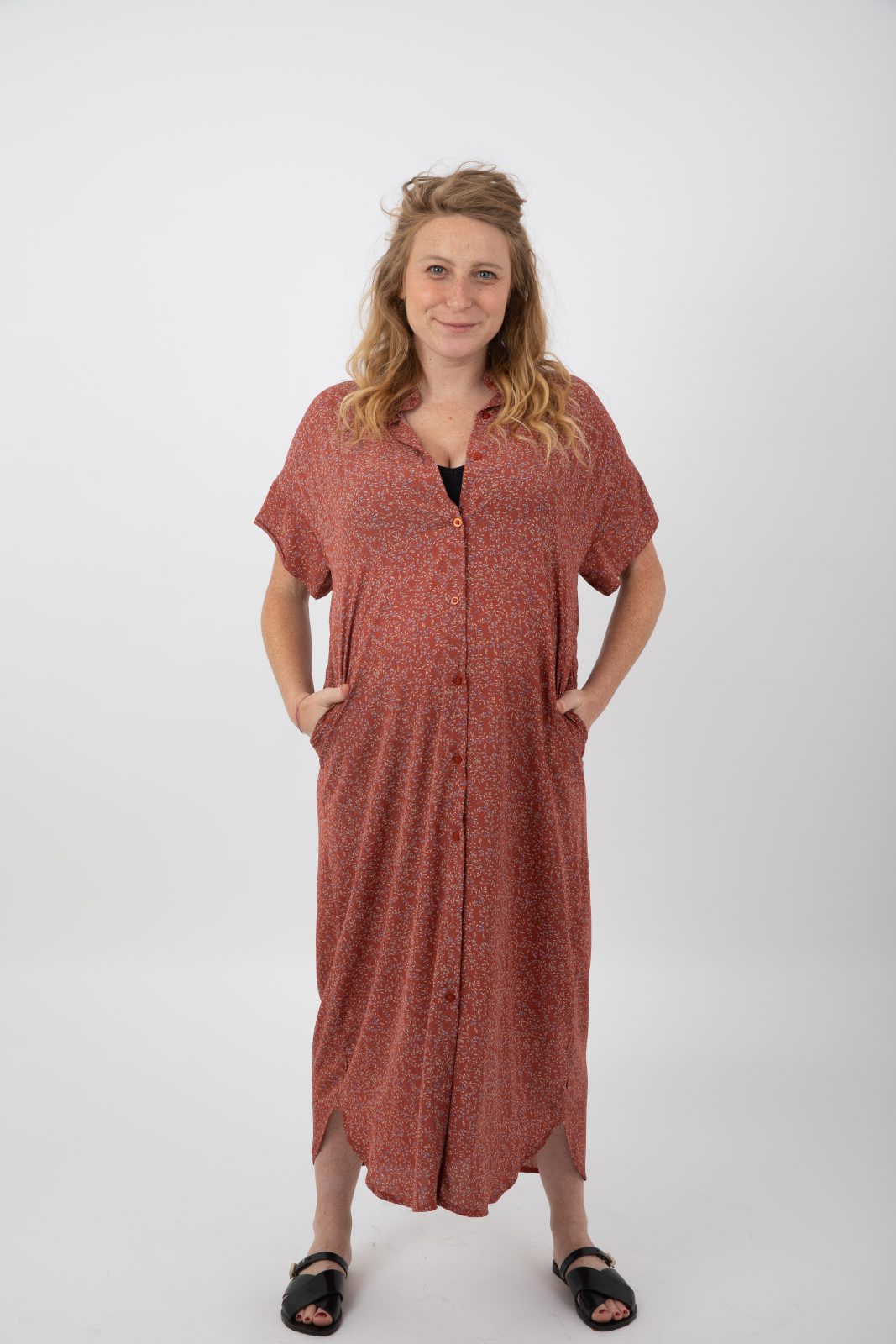 לאורכה כפתורים מה שהופך אותה גם לשמלת הנקה נוחה